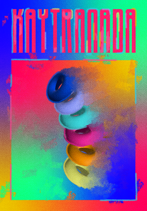 This is a concept poster for Kaytranada tour merchandise. Kaytranada’s music is upbeat and complex, so I wanted to incorporate that into the look and feel of the poster. When I listen to his music, I want to get up and move, so I aimed to make the illustration and typography on the poster feel alive and full of motion. I included bright colors and lots of texture to add to that feel.