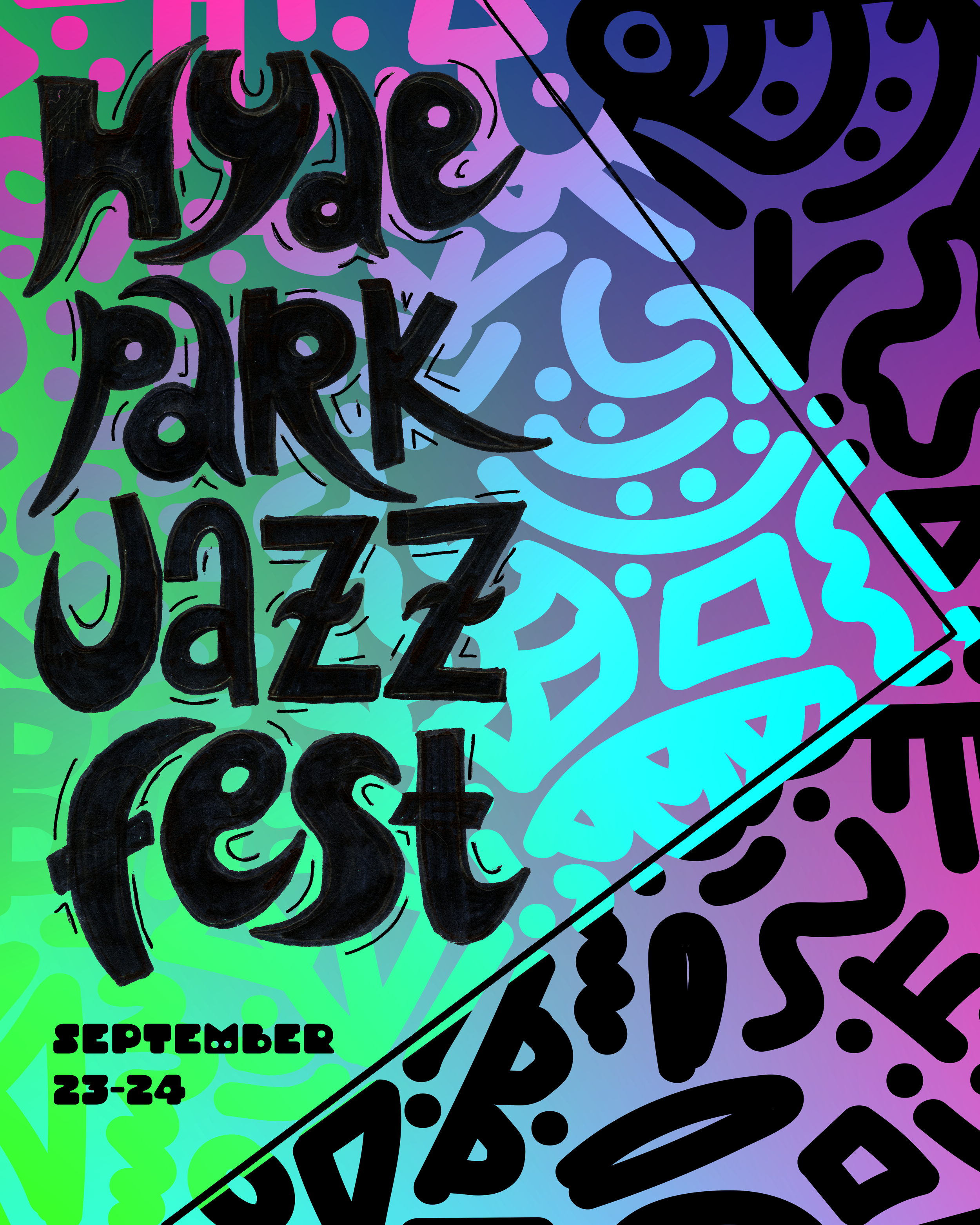 I designed this poster as a merchandise concept for the Hyde Park Jazz fest. This includes hand-drawn type. I wanted this poster to look how jazz music sounds. I included bright colors and created a busy pattern to emulate the feel of the different instruments. I also wanted the poster to have an organic feel to emphasize the fluidity and improvisation that is a part of jazz music.